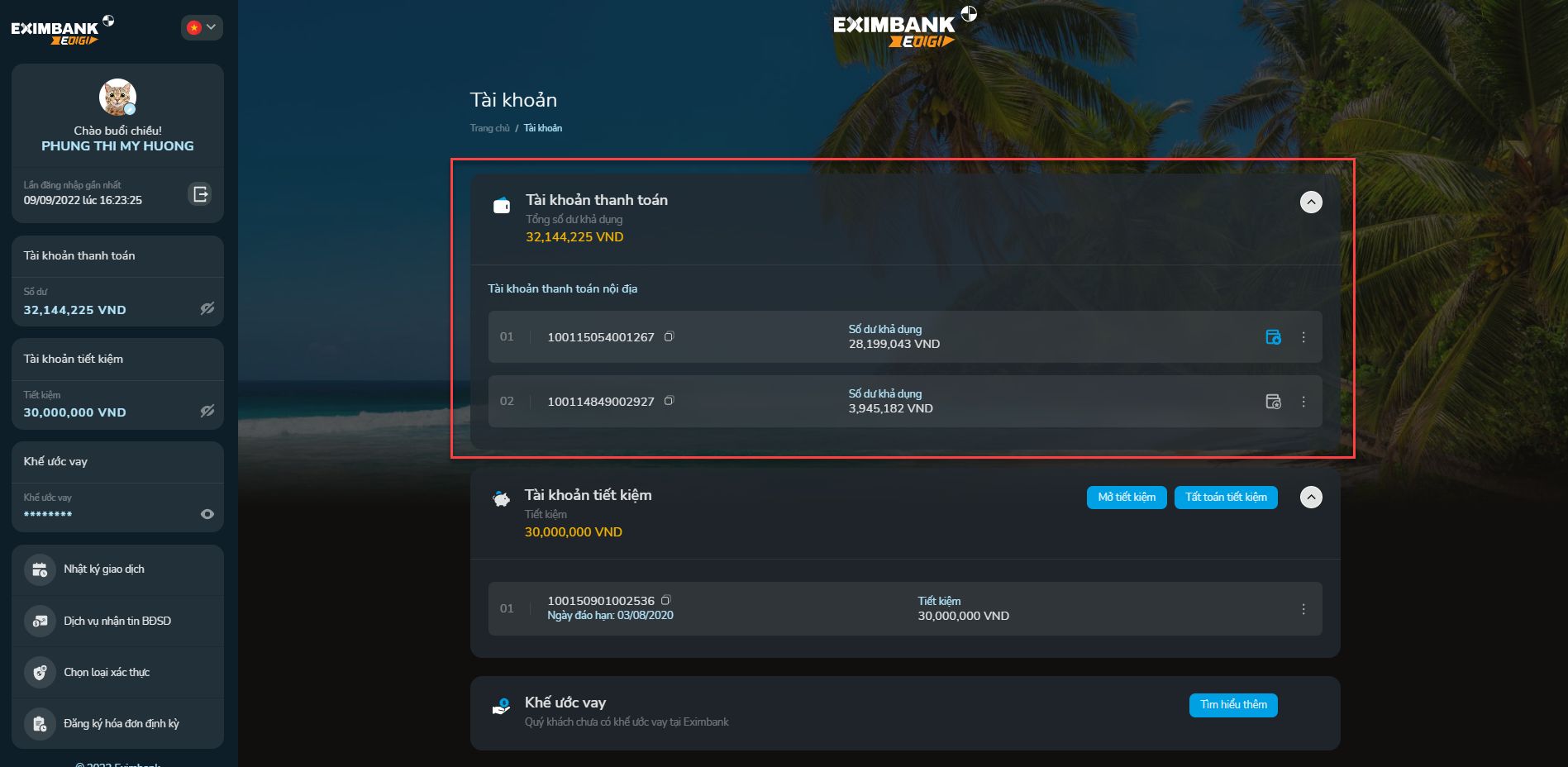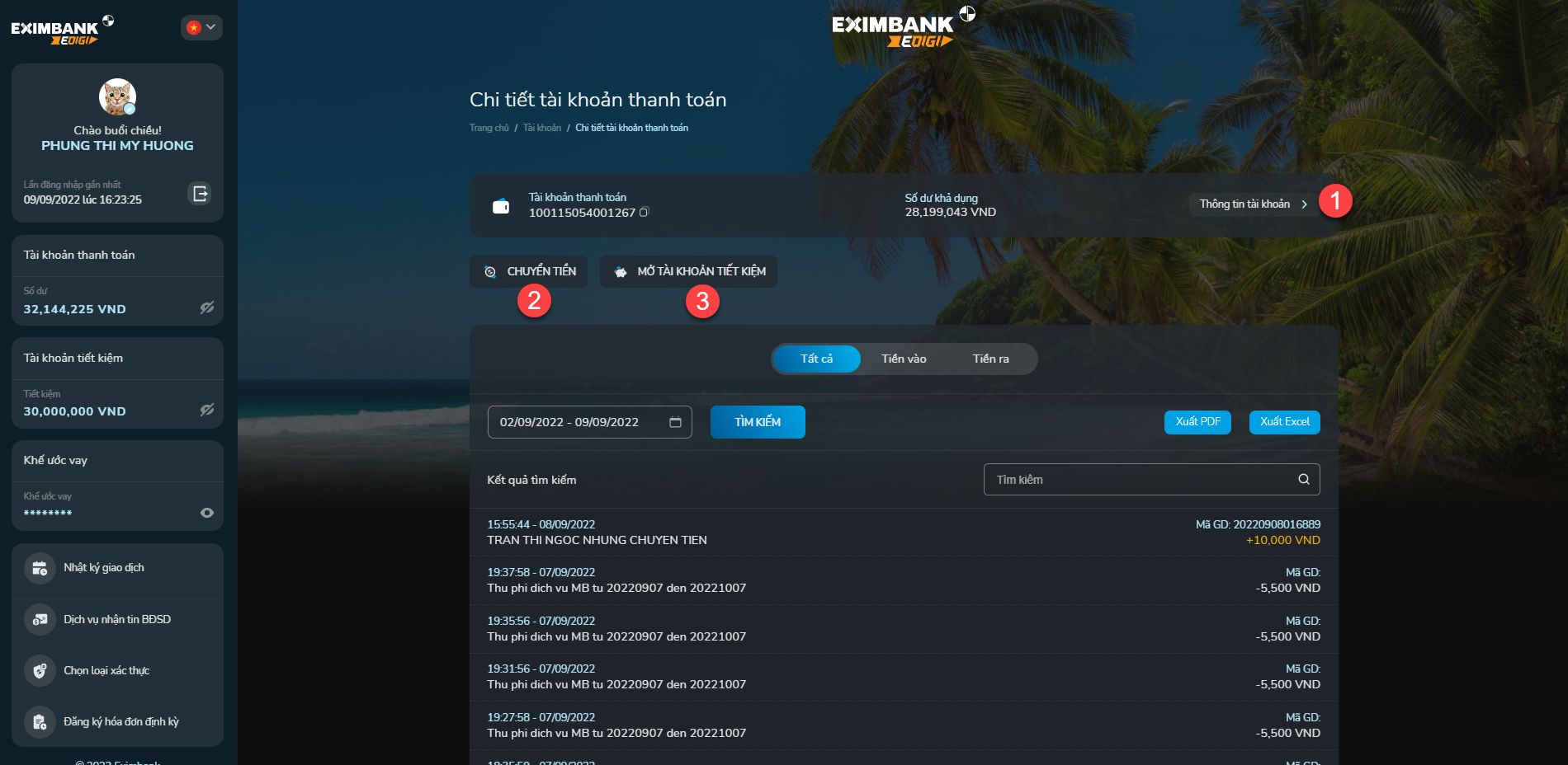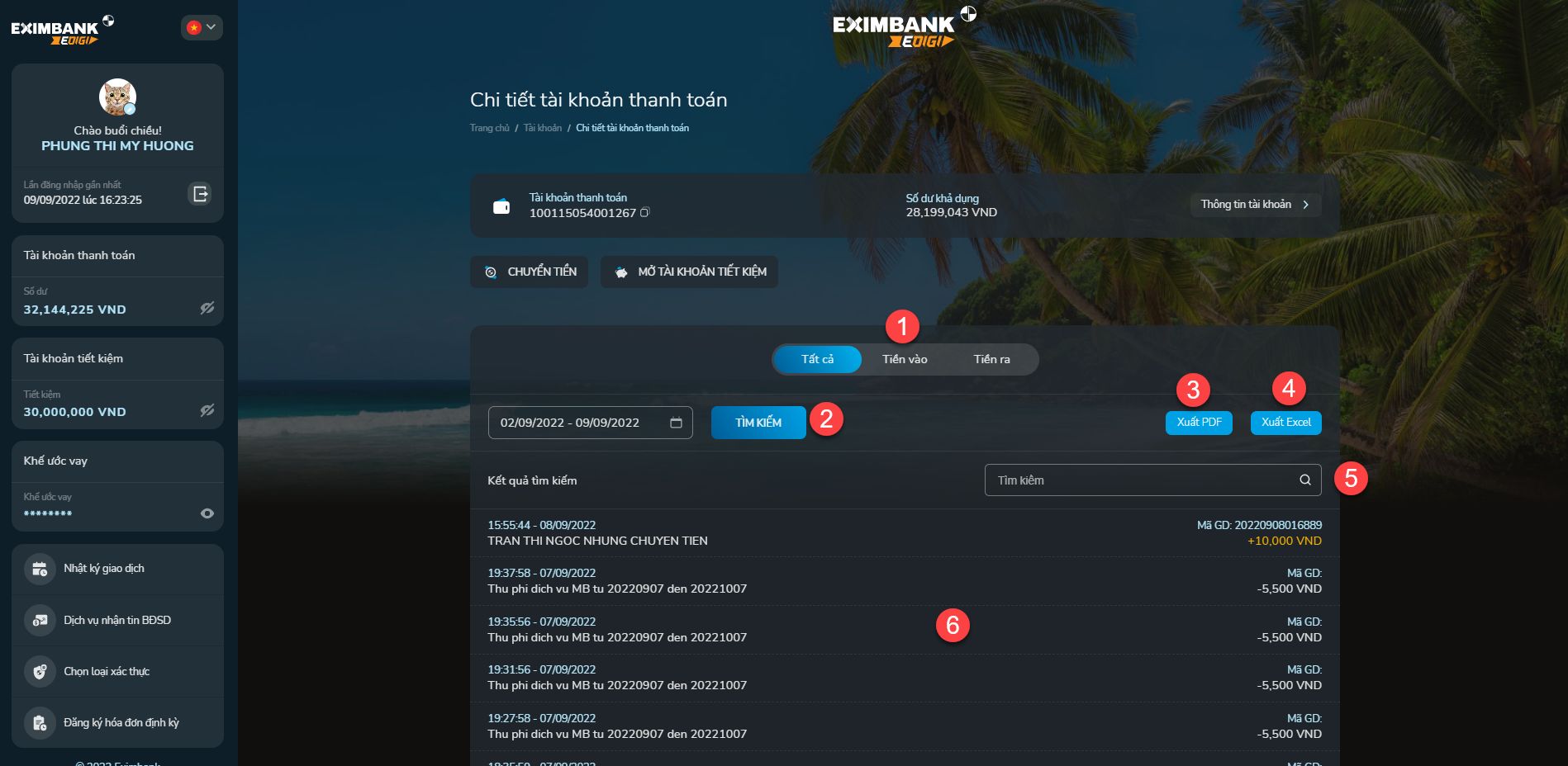 Bước 4: Lịch sử giao dịch của tài khoản thanh toán