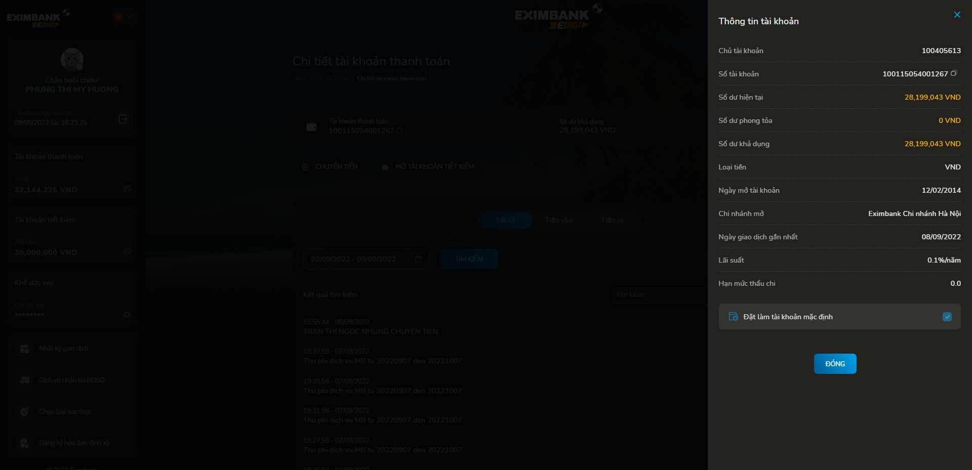 - Chọn 01 lịch sử GD bất kỳ: xem chi tiết tiết giao dịch