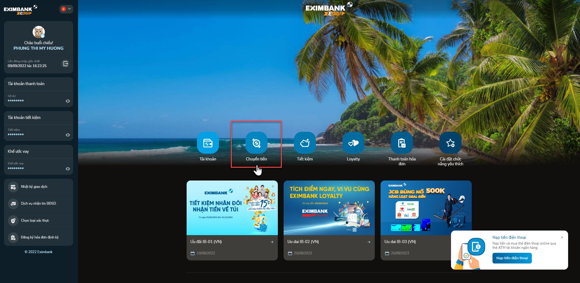 - Chuyển tiền đến Tài khoản của tôi