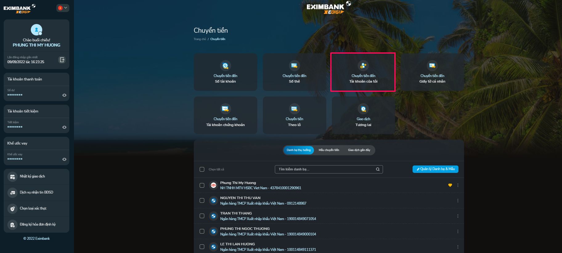 Bước 1: Tại màn hình Trang chủ → chọn Chuyển tiền đến tài khoản của tôi