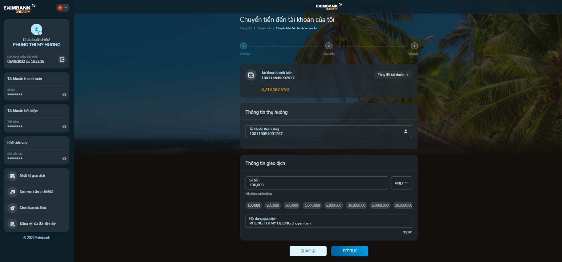 - Chọn/Nhập Thông tin giao dịch (Số tiền + Nội dung giao dịch)