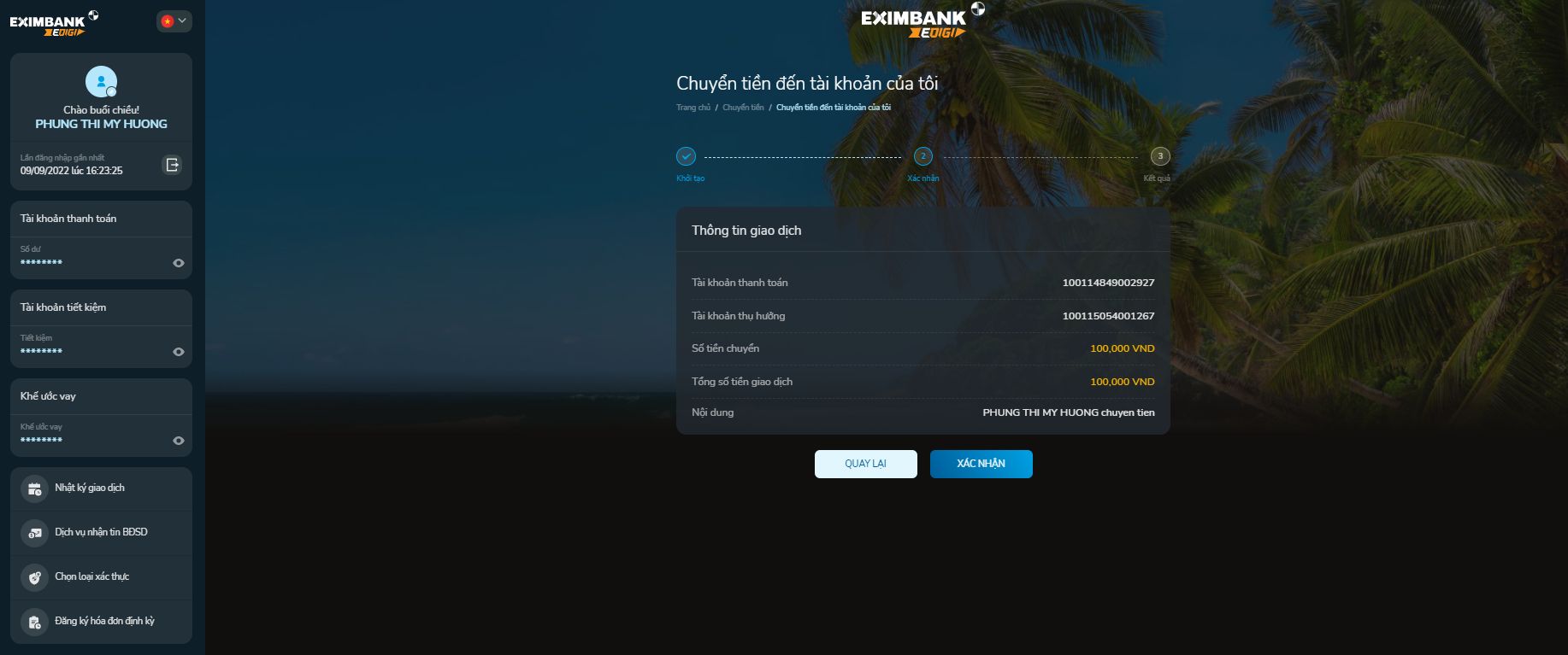 *Lưu ý: Không nhập mã xác thực OTP cho giao dịch Chuyển tiền đến tài khoản của tôi