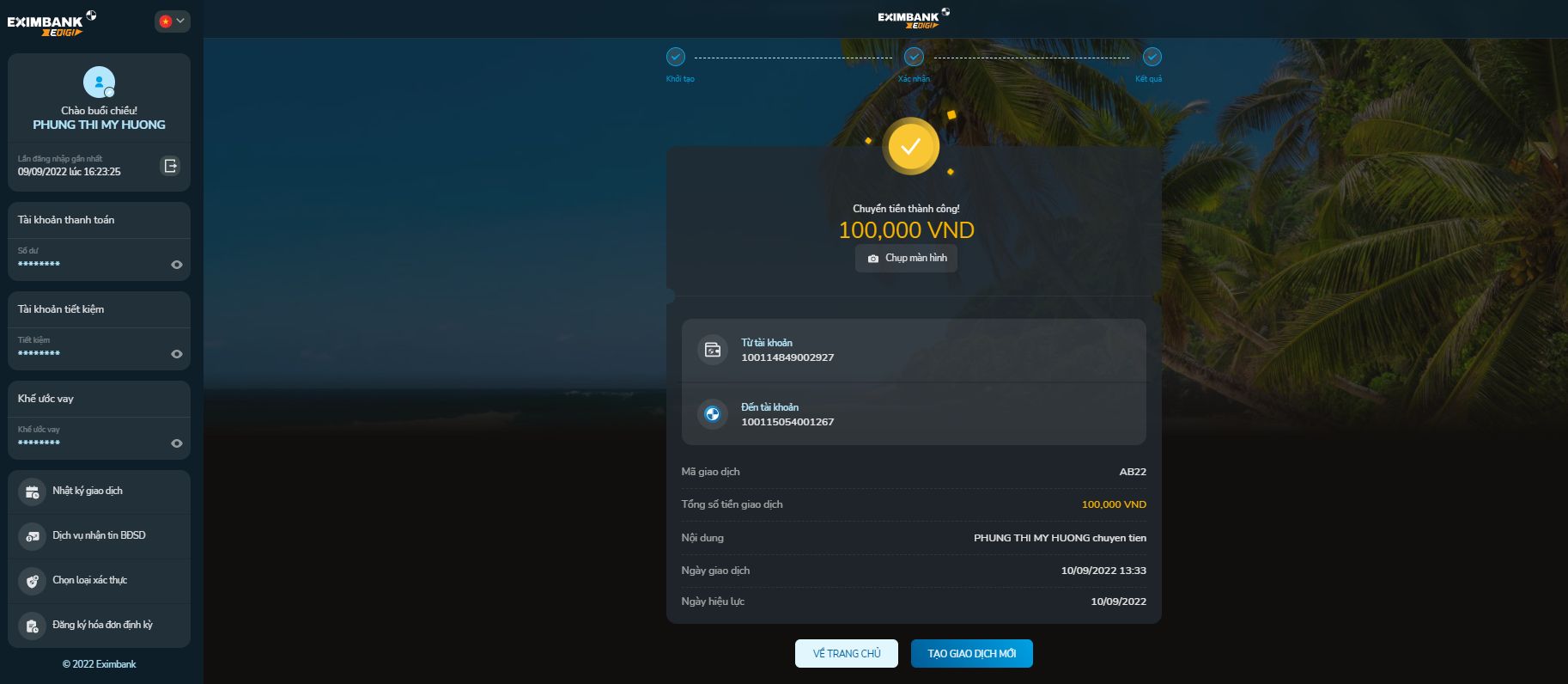 Bước 4: Hiện màn hình Kết quả giao dịch thành công.