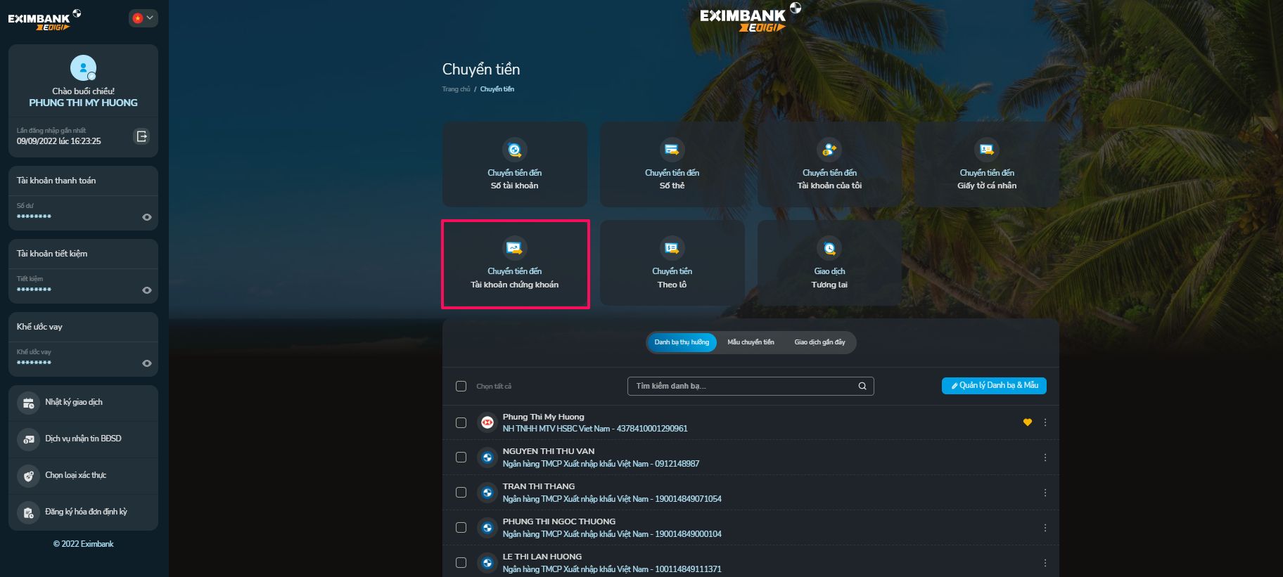 - Lưu danh bạ thụ hưởng (Không bắt buộc)