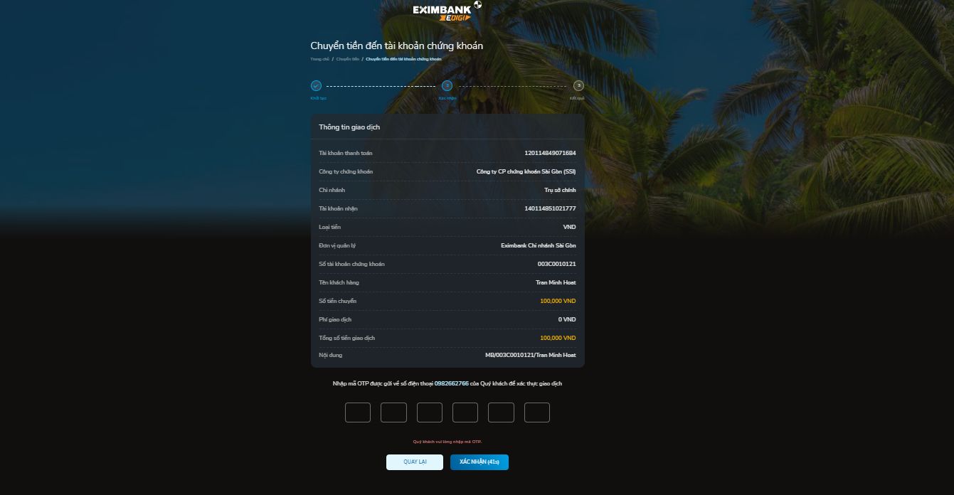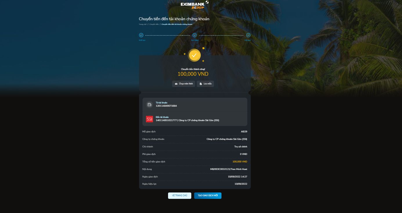 Bước 4: Hiện màn hình Kết quả giao dịch thành công.