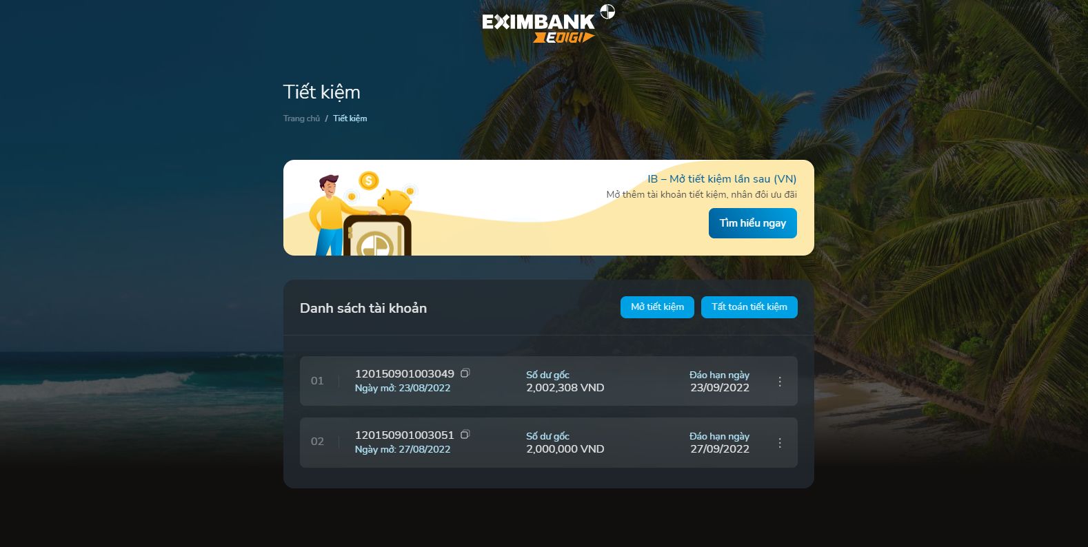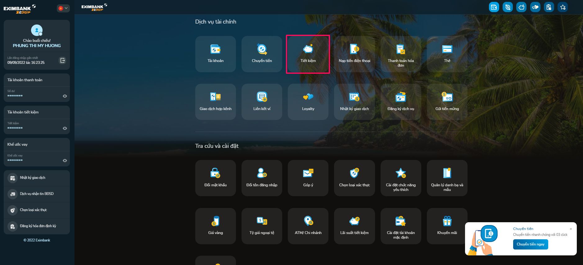 Bước 2: Tại màn hình Tiết kiệm, thực hiện: