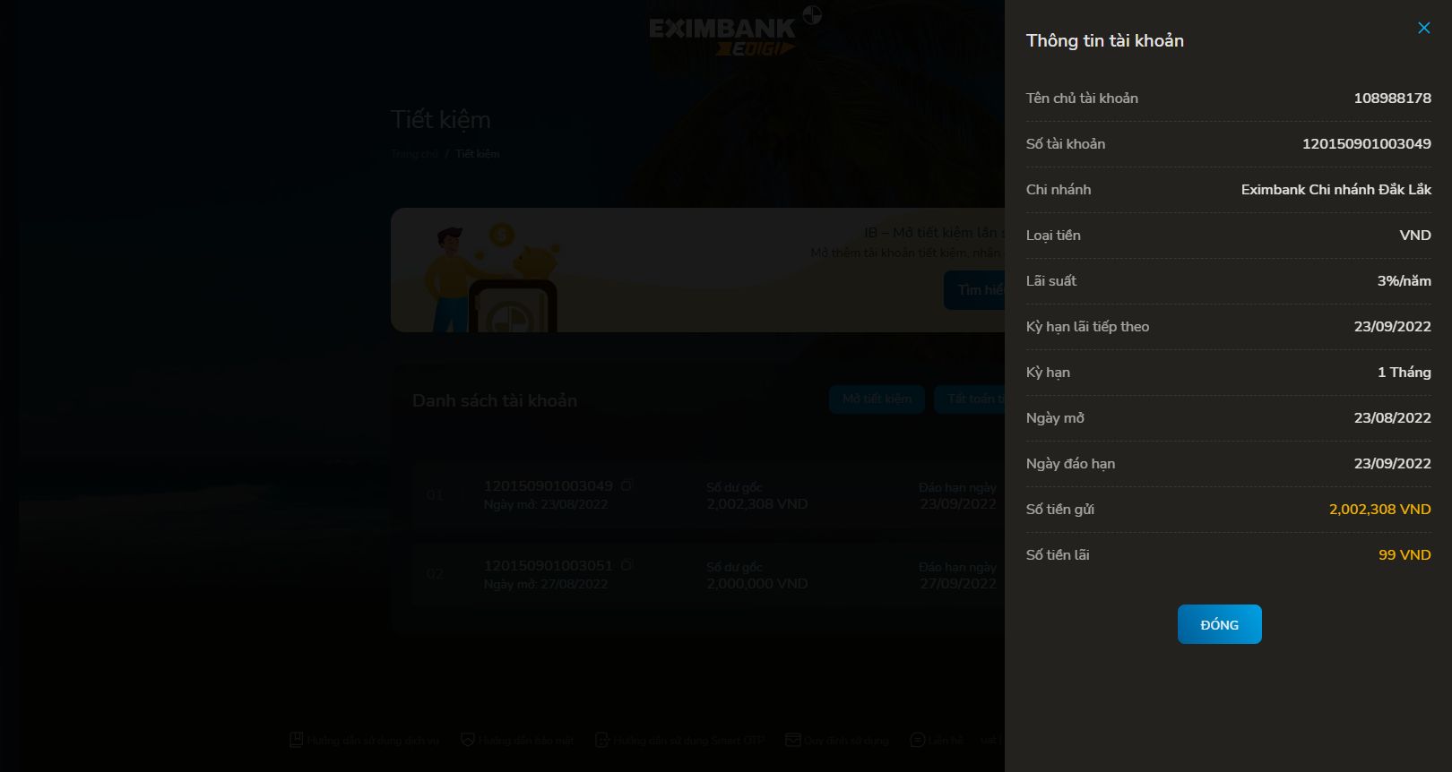 - Chọn 01 TKTK → xem chi tiết Thông tin tài khoản