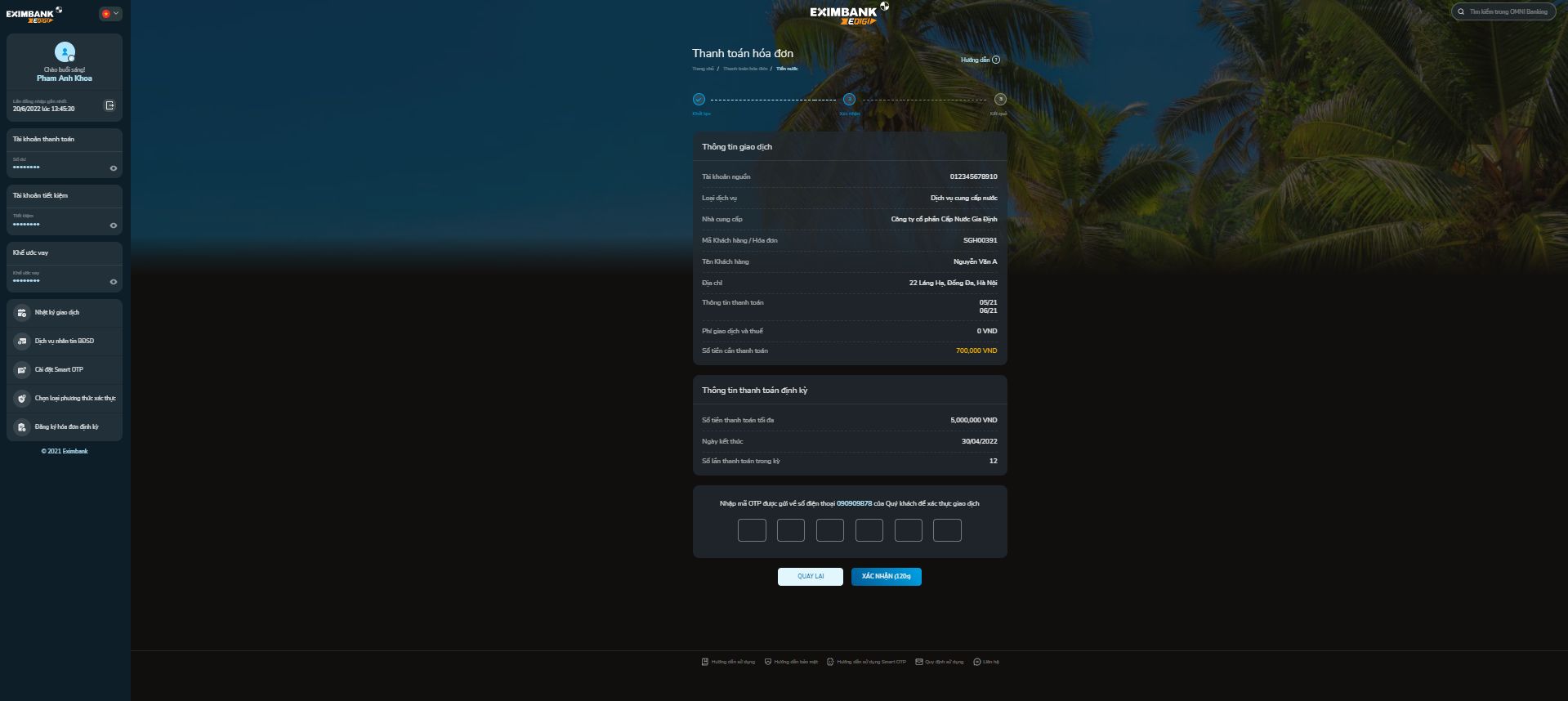 - Nhập mã xác thực OTP