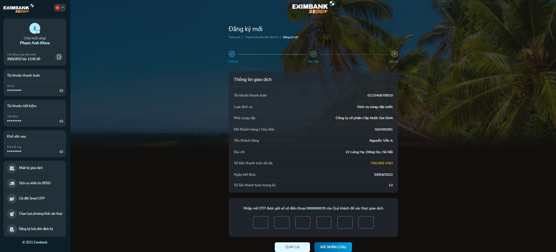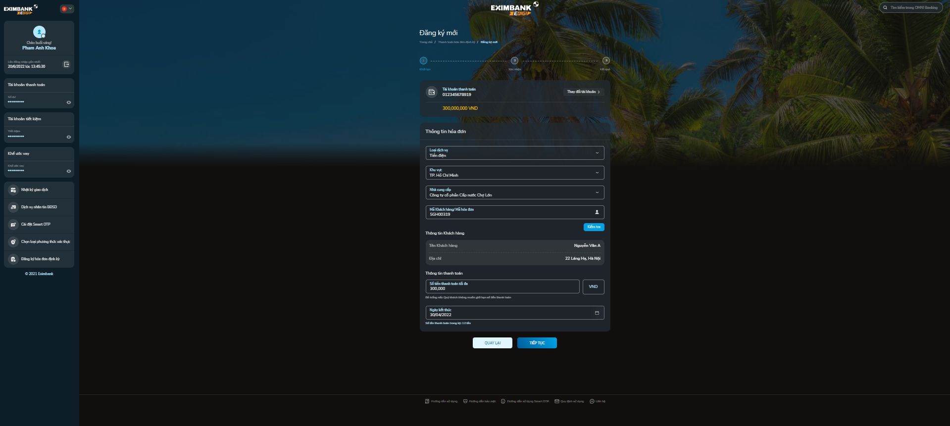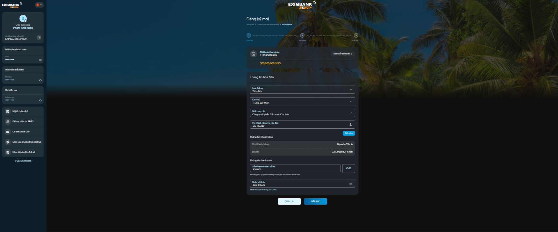 Bước 3: Tại màn hình Khởi tạo, khách hàng thực hiện: