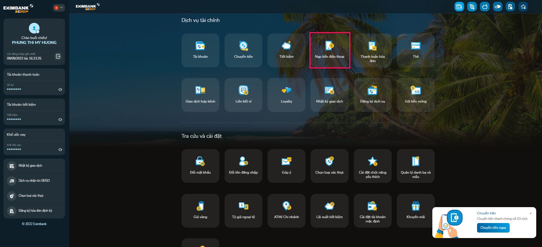 Bước 1: Tại màn hình Trang chủ → chọn Nạp tiền điện thoại