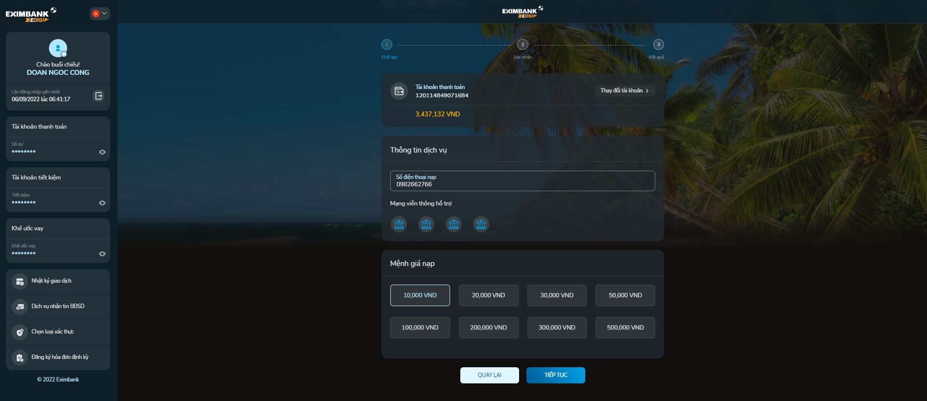 Bước 2: Tại màn hình khởi tạo Nạp tiền điện thoại, thực hiện: