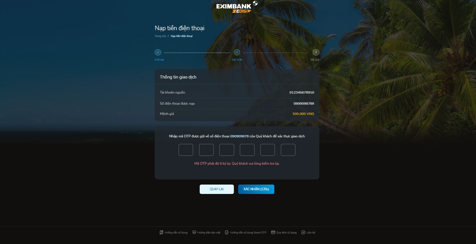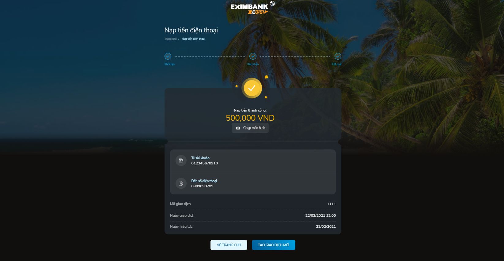 Bước 4: Hiện màn hình Kết quả giao dịch thành công