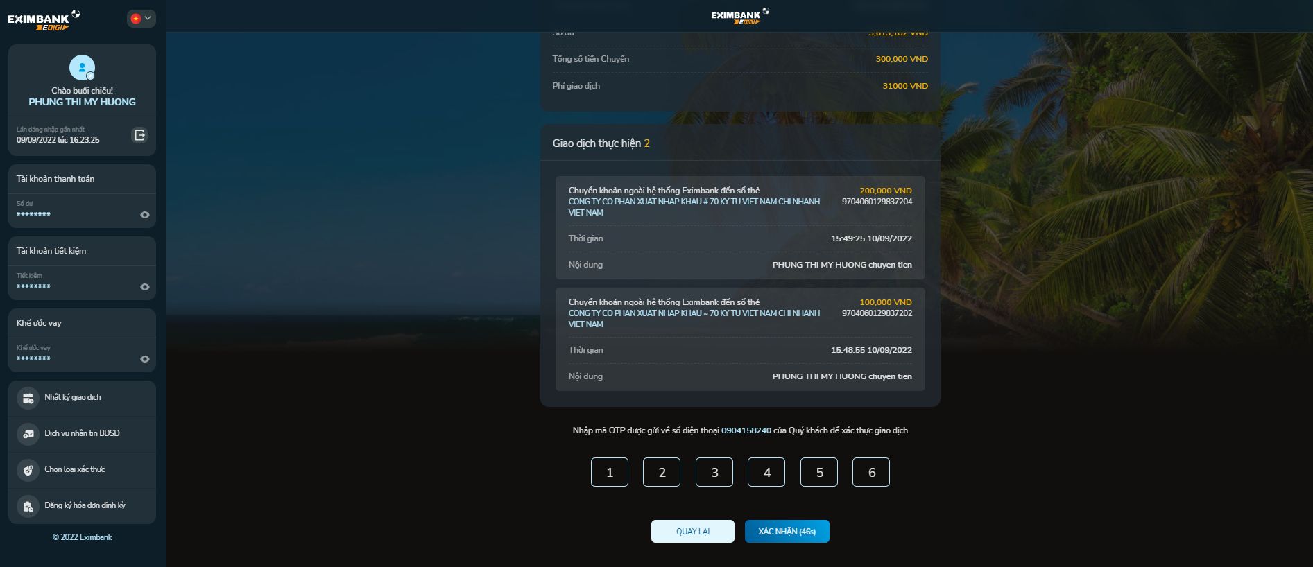 - Nhập mã xác thực OTP