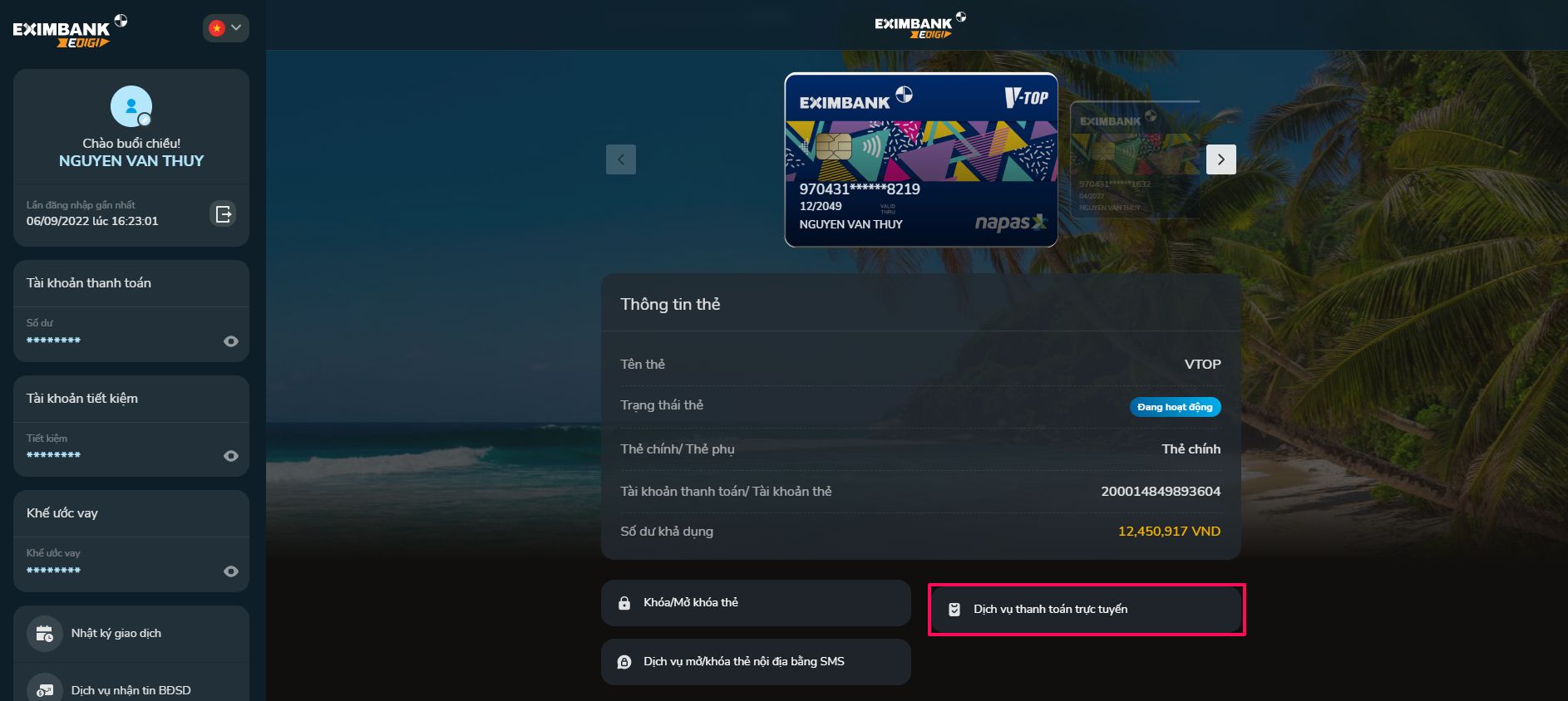Khách hàng chọn Dịch vụ thanh toán trực tuyến để tiến hành khởi tạo dịch