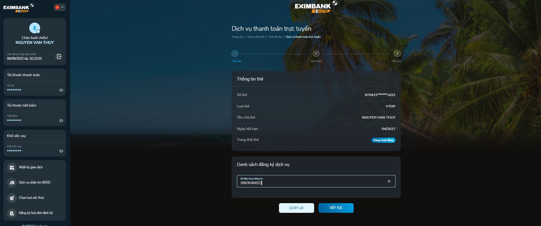 - Khách hàng nhập số điện thoại đăng ký dịch vụ thanh toán trực tuyến
