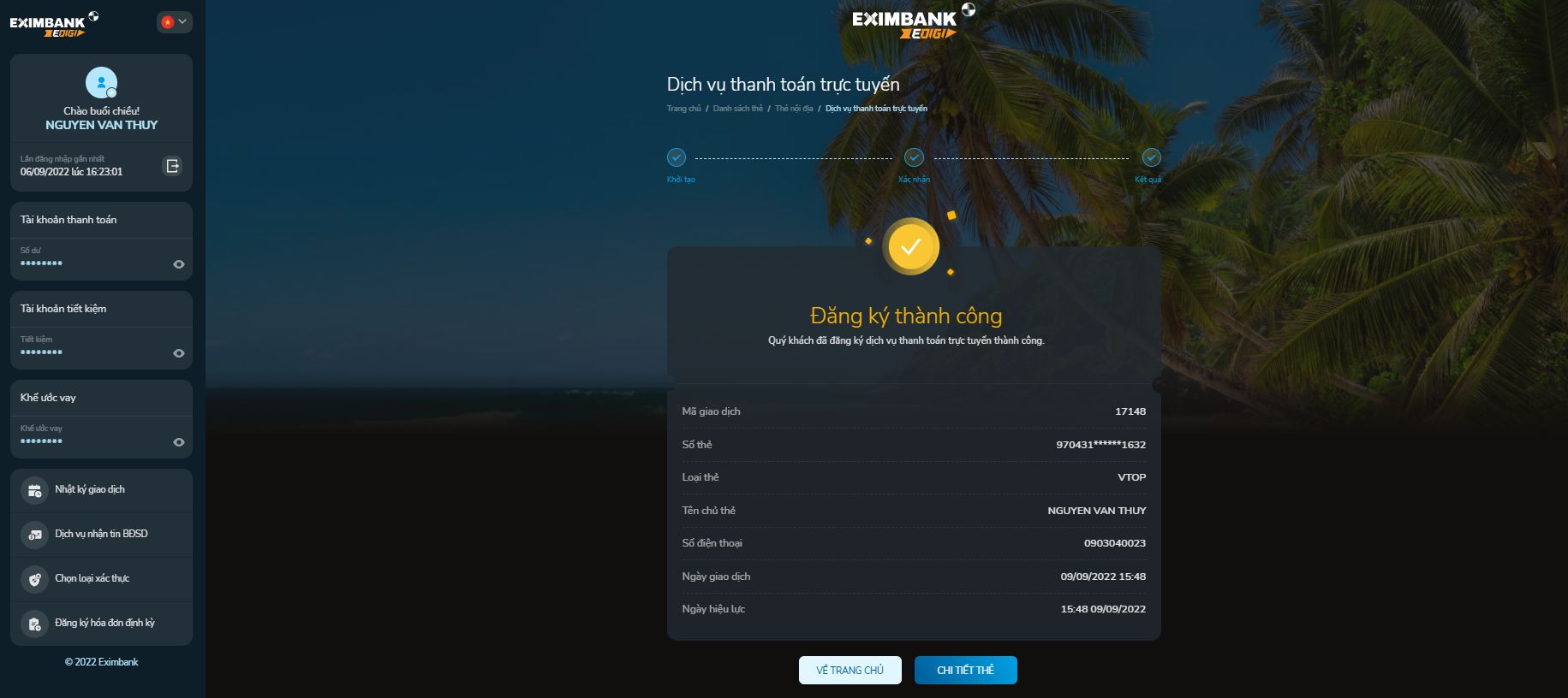 Bước 4: Hiện màn hình Kết quả giao dịch thành công