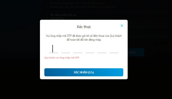 - Khách hàng nhập SMS OTP/Smart OTP để xác nhận đổi tên đăng nhập